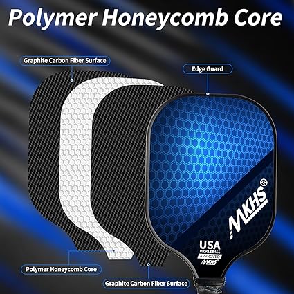 【Firm and Reassuring Grip】Some grips split and peel away shortly, MKHS pickleball paddles set of 2 with unique stitched and ribbed grip gives you both a comfy and durable grip and great maneuverability.